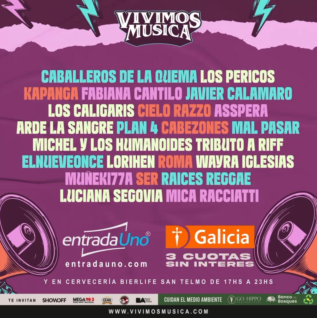 «Vivimos Música» no es solo un festival, es una celebración de la diversidad y riqueza del rock argentino. Con más de 20 bandas repartidas en dos escenarios, los fans podrán deleitarse con una amplia variedad de estilos que abarcan desde el rock clásico hasta el punk y el metal.