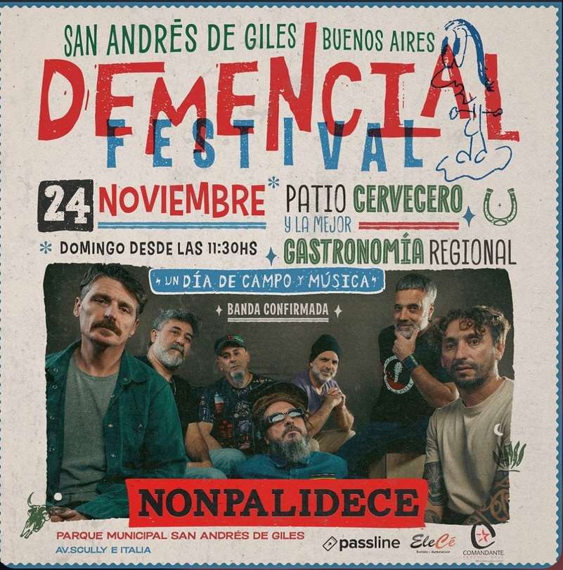 Nonpalidece se une al festival Demencial, el cual es un encuentro especial para los amantes del reggae, el rock y el blues tendrán una cita imperdible en el Complejo Aeropuerto de San Andrés de Giles, Buenos Aires.