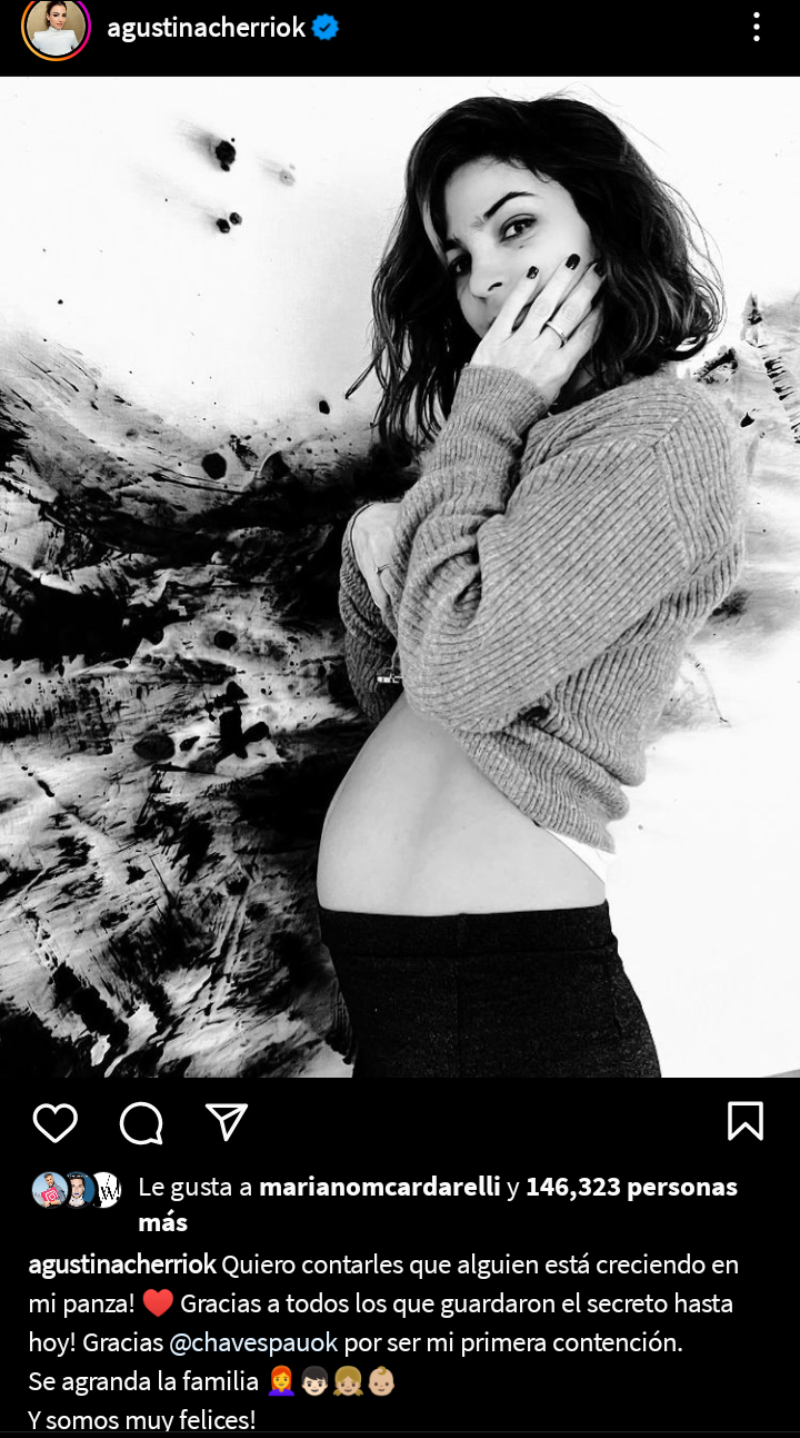 Agustina Cherri anunció a través de su Instagram la noticia de que esta embarazada.