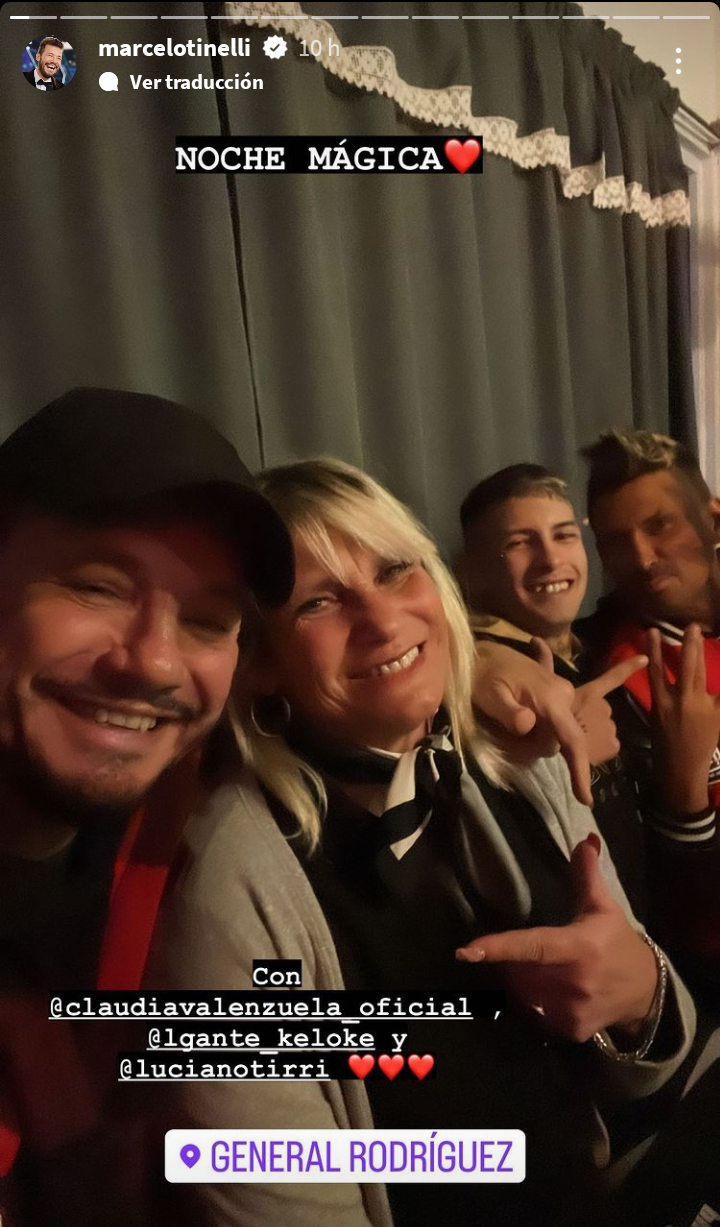 Anoche las redes explotaron cuando Tinelli subió varias stories en su cuenta de Instagram, revelando desde el inicio que se encontraba visitando la casa de L Gante que esta en General Rodriguez. Por parte del cantante también subió una storie.