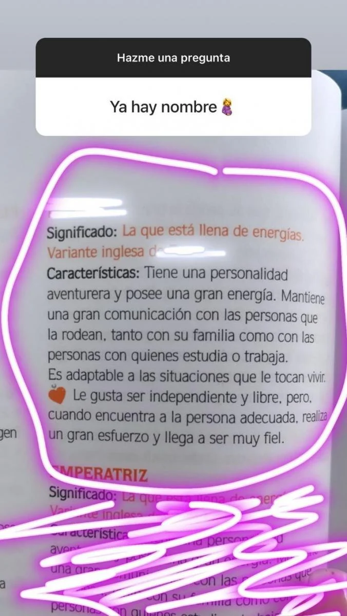 «Significado: La que está llena de energías. Características: Tiene una personalidad aventurera y posee una gran energía. Mantiene una gran comunicación con las personas que la rodean, tanto con su familia como con las personas con quienes estudia o trabaja«, se leyó en la publicación.