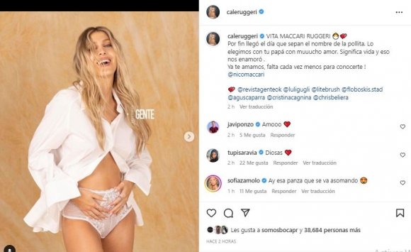 «Se va a llamar Vita«, reveló Cande Ruggeri, «En la pandemia me puse a estudiar italiano y ahí descubrí este nombre que me encantó. Me gusta especialmente su significado: vida«, explicó la modelo el motivo por el cual eligió ese nombre.
