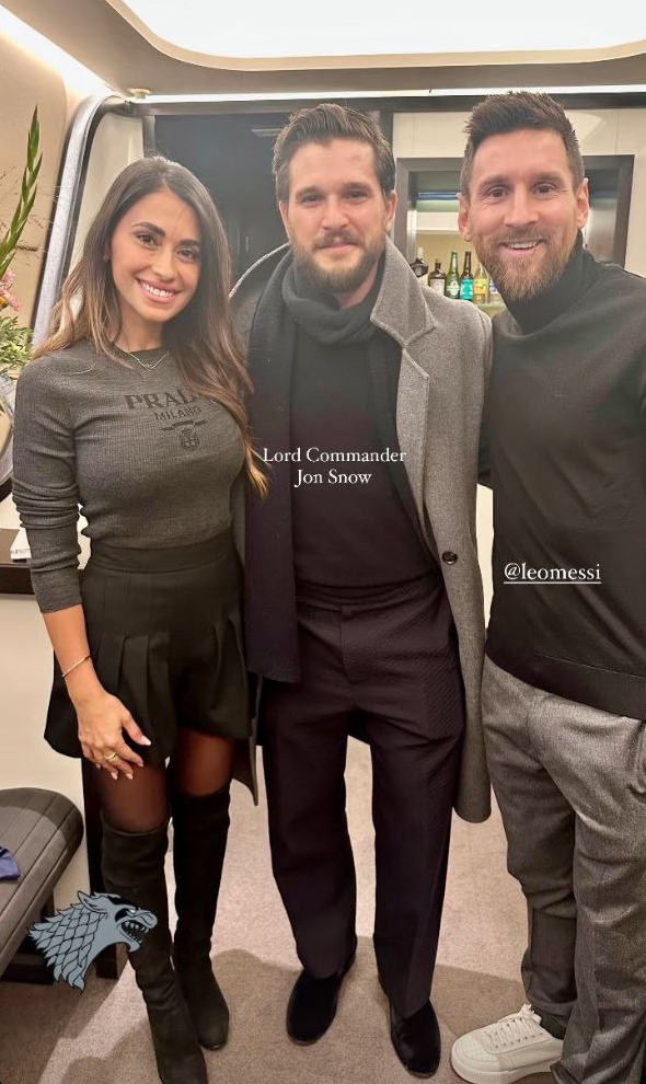 La esposa de Messi sorprendió al subir una storie en su cuenta de Instagram, en donde aparece la pareja junto al actor Kit Harington, quien interpretó a “Lord Commander” en la popular serie de HBO, Game of Thrones.