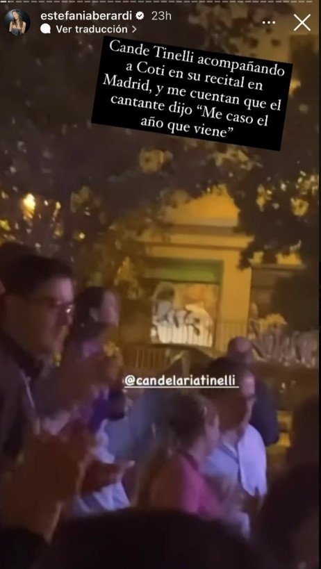 «Cande Tinelli acompañando a Cori en su recital en Madrid, y me cuentan que el cantante dijo «Me caso el año que viene»»