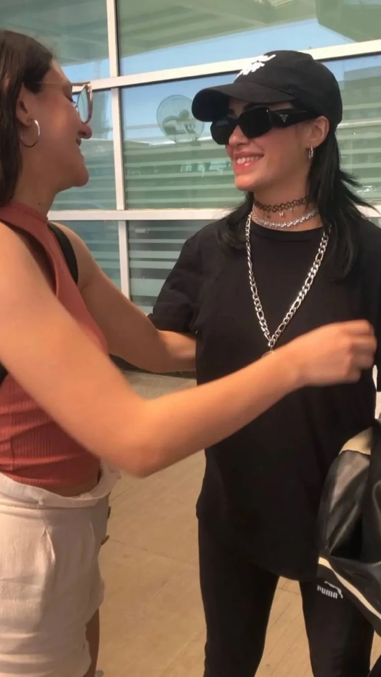 Varios fanáticos se sorprendieron al verla en el aeropuerto de Ezeiza y no dudaron en pedirle fotos para tener de recuerdo. Rápidamente las imágenes comenzaron a circular por internet.