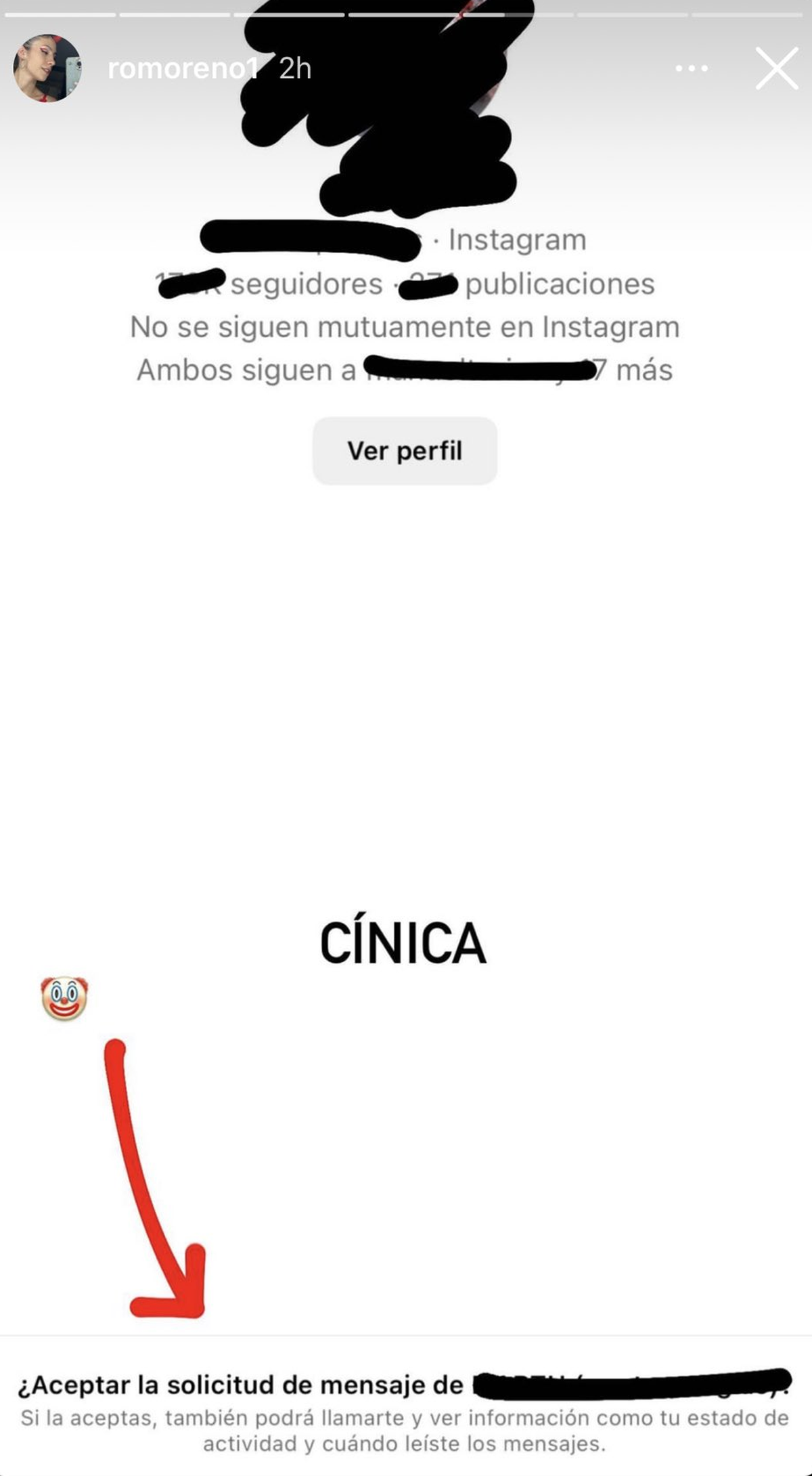 En los últimos días, Rocío Moreno, subió una storie de un chat, en donde supuestamente la nueva pareja del cantante, Martina Quetglas quisó comunicarse con ella.