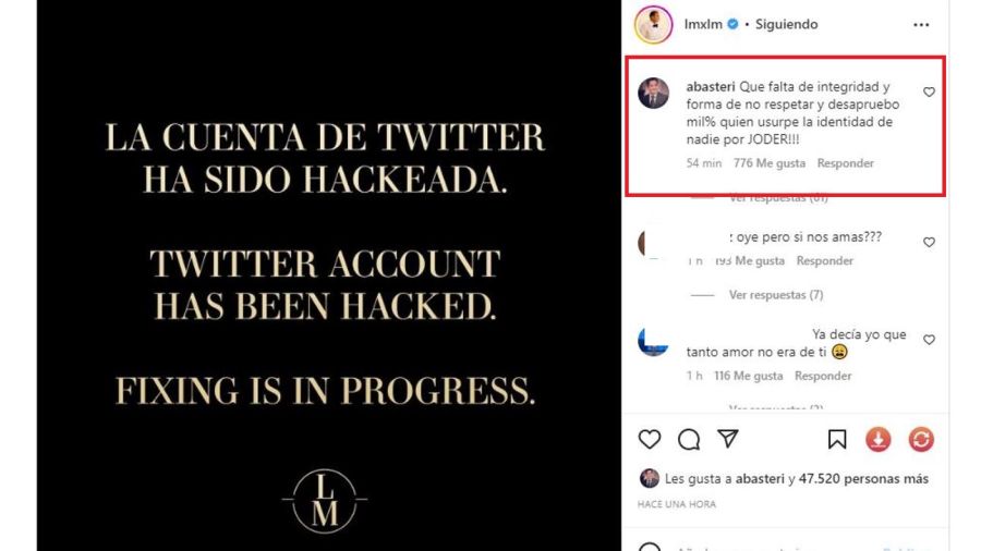 El cantante a través de Instagram contó el hackeo que sufrió en su cuenta oficial de Twitter. «La cuenta de Twitter ha sido hackeada. El arreglo estÔ en proceso» anunció Luis Miguel.