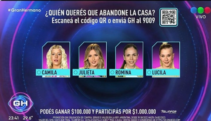 Anoche los participantes de la casa más famosa del país tuvieron que regresar al confesionario para nominar a sus compañeros. Romina le dio dos votos para Camila y uno para Nacho, Marcos dos votos para Tora y otro para Camila, Julieta los primeros dos para Camila y otro para Tora, Nacho dejó dos votos para Romina y otro para Julieta, mientras que la Tora dos votos para Julieta y otro para Camila y finalmente Camila hizo dos votos para Romina y otro para Julieta.
