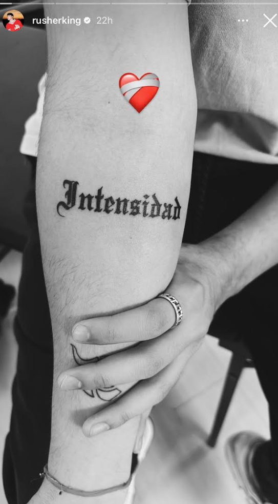 Acompañado de su fiel amigo El Demente, Rusherking se adentró en el misterioso mundo de los tatuajes para plasmar en su antebrazo una palabra que refleja toda su esencia: «Intensidad».