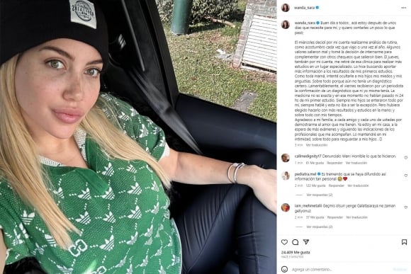 Ā«No soy adivina ni tengo una bola de cristalĀ», exclamó Wanda en su publicación. Ā«La medicina no es exacta y en ese momento no habĆan pasado ni 24 horas desde mi primer estudio. Siempre he sido franca con mis hijos y esta no serĆa la excepción. Pero habrĆa preferido hacerlo con mĆ”s información y resultados en mano, y sobre todo, respetando mis propios tiemposĀ«.