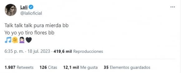 «Talk talk talk pura mierda bb Yo yo yo tiro flores bb«, escribió la cantante.
