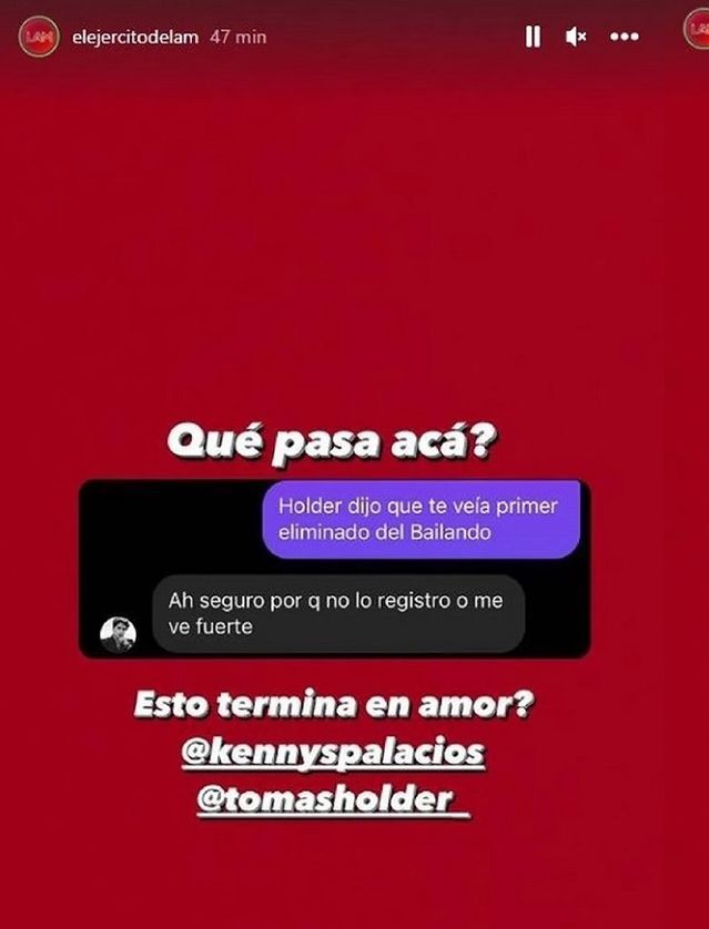 Sin embargo, Tomás Holder no se quedó callado y decidió contraatacar con una respuesta que no tiene nada de sutil. La cuenta @elejercitodelam compartió la respuesta de Holder a través de una Instagram Story que anunciaba: «Holder le contesta a Kennys Palacios».