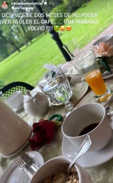 «Después de dos meses de no poder ver ni oler el café… ¡Una mañana volvió!”, escribió Nicole en las historias.
