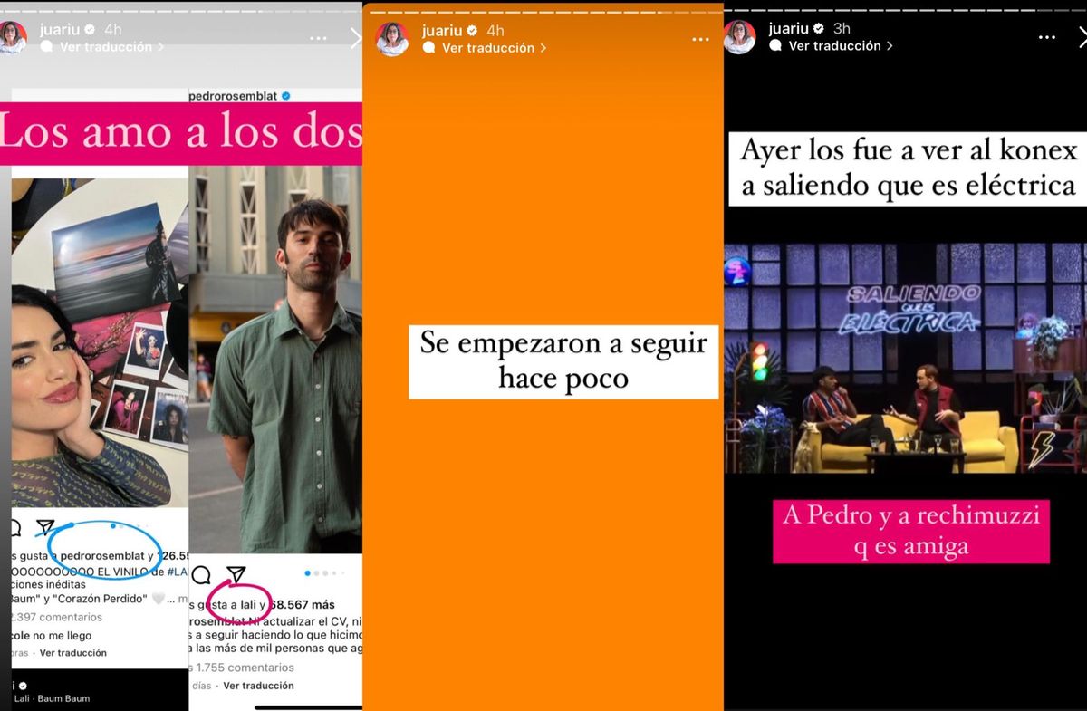 «Tomó esa historia de Juariu para decirles que medio que me confirmaron que habría habido o habría algo entre Lali y Pedro Rosemblat«, escribió.