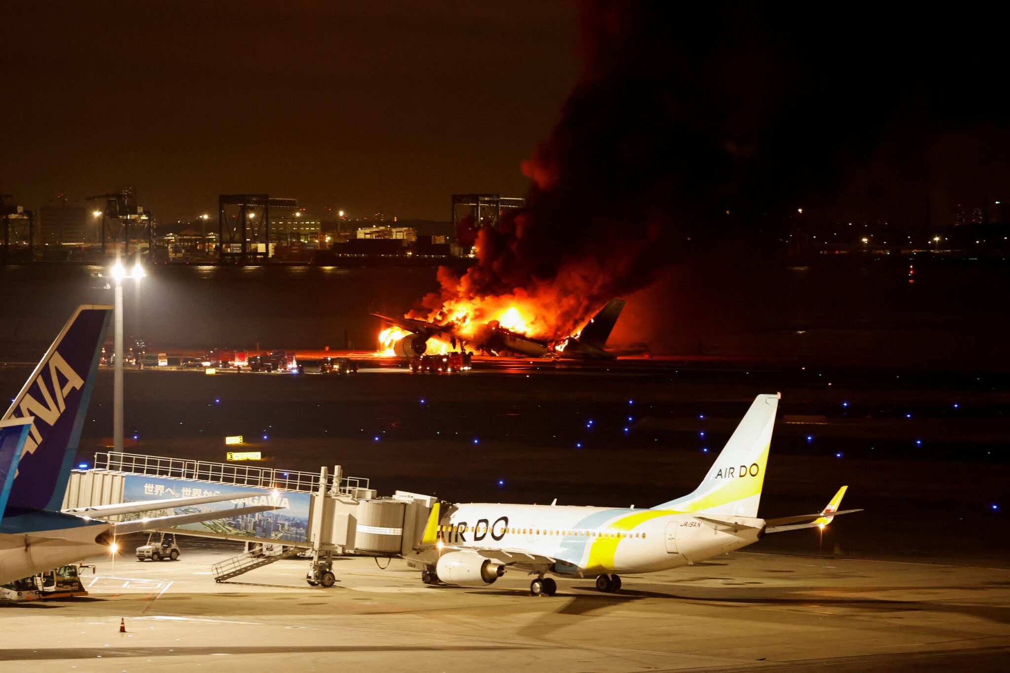 Las imágenes del accidente difundidas por la televisión pública japonesa muestran a uno de los aviones completamente consumido por las llamas.