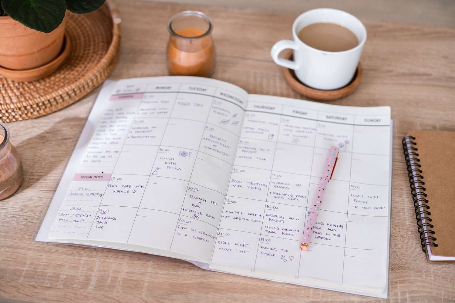 Por ejemplo: ir al gimnasio tres veces por semana, realizar compras de verduras una vez por semana, etc.