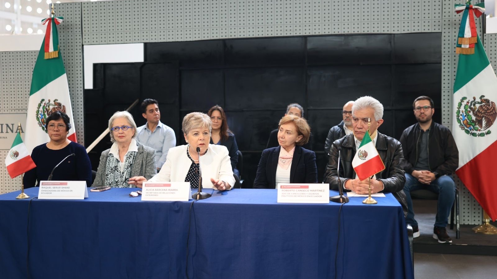 La canciller mexicana, Alicia Bárcena, calificó el hecho como un «ultraje» y señaló que «se violó la inmunidad de la Embajada y del personal diplomático, con una gran violencia y sin autorización».