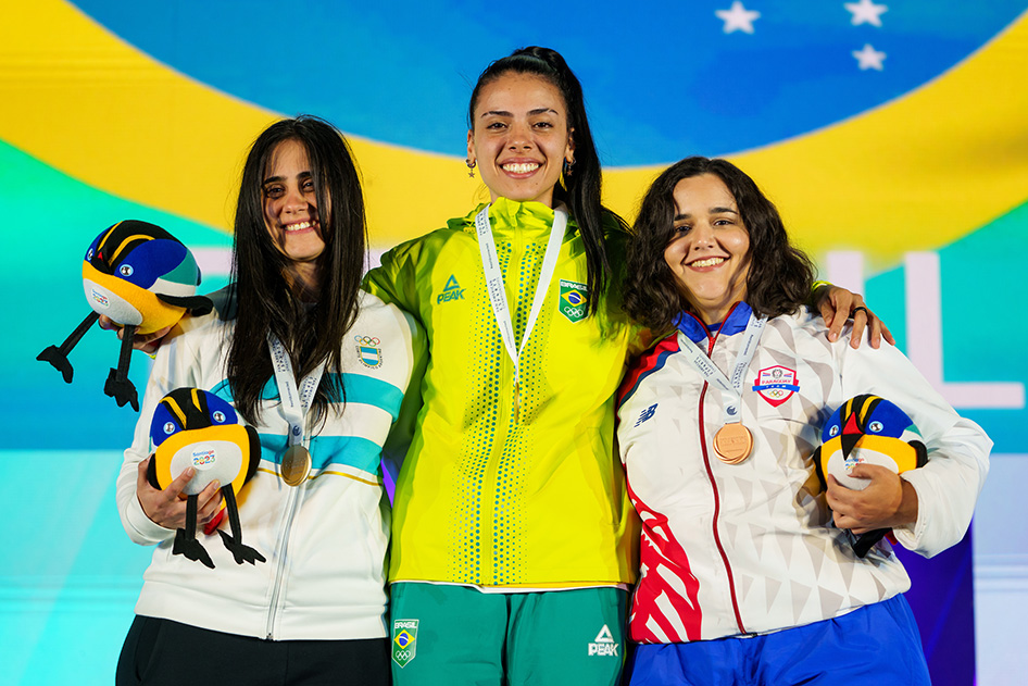 Women’s eFootball Medal Ceremony where Brazil win Gold, Argentina win Silver and Paraguay win Bronze during the Pan American Esports Games in Santiago, Chile.