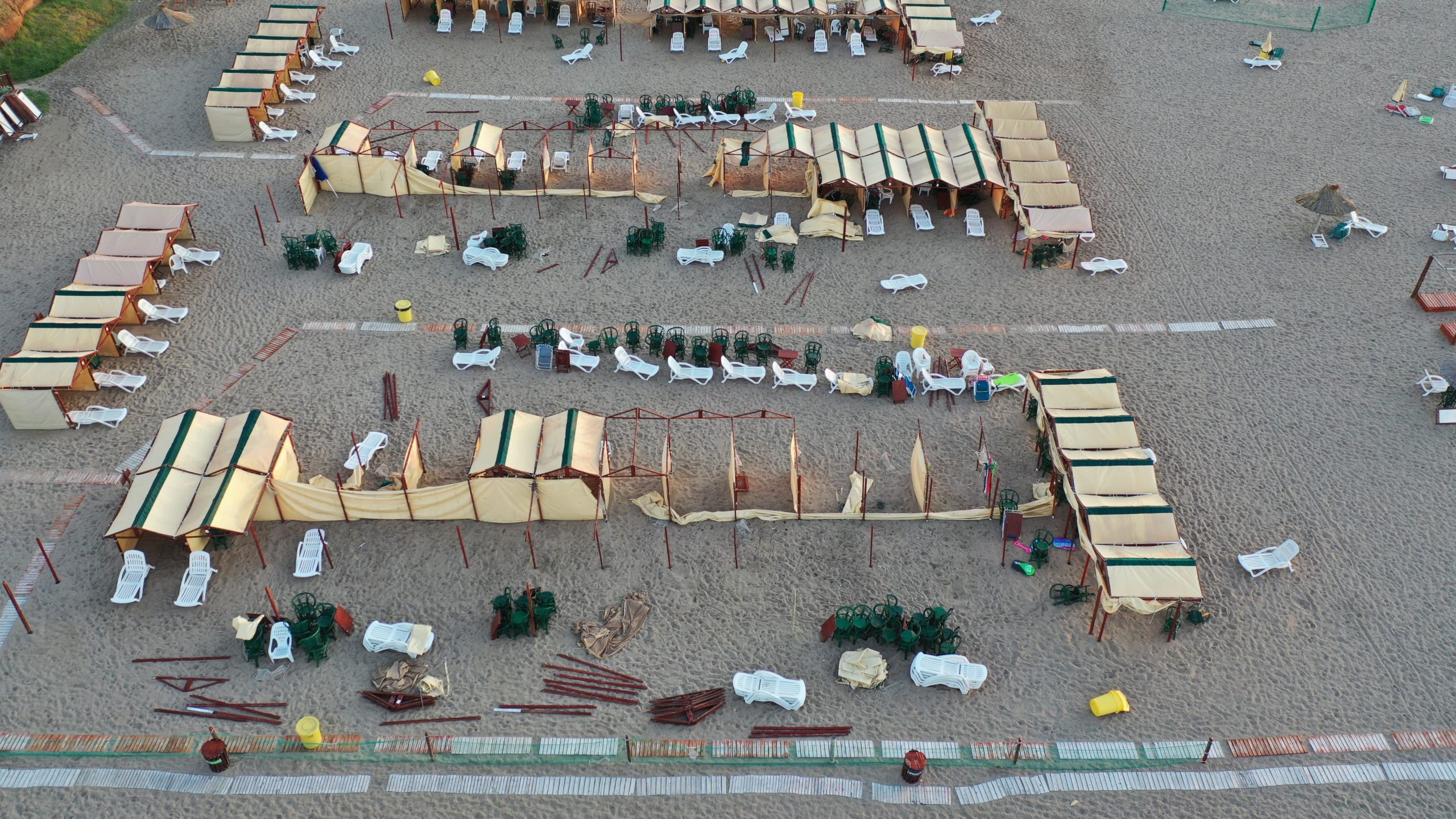 Según informaron fuentes municipales, el temporal se desató en la tarde, pasadas las 17:30, con fuertes ráfagas de viento y granizo, que causaron destrozos en los techos de la terminal de ómnibus, viviendas particulares, la feria de emprendedores ubicada en la plaza central y en los paradores, carpas e instalaciones de distintos balnearios.