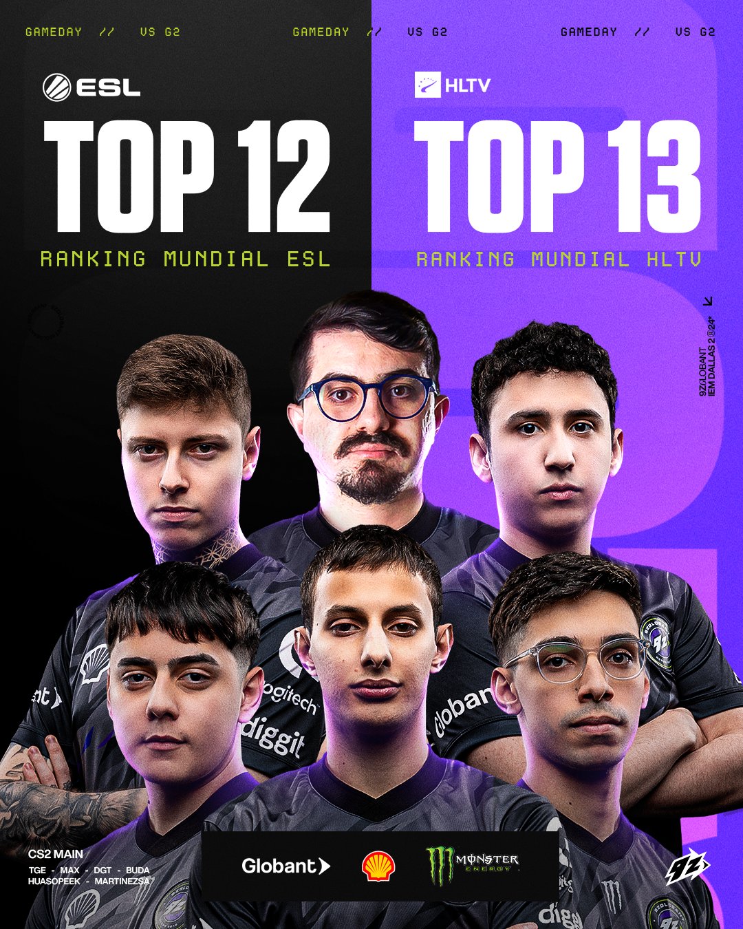 Tras nuestra histĂłrica participaciĂłn en la #IEM Dallas alcanzamos los tops 12 y 13 en los rankings de @ESLCS y @HLTVorg, logrando los puestos mĂĄs altos en la historia del club.#TodoVioleta pic.twitter.com/tazHPTo5WB