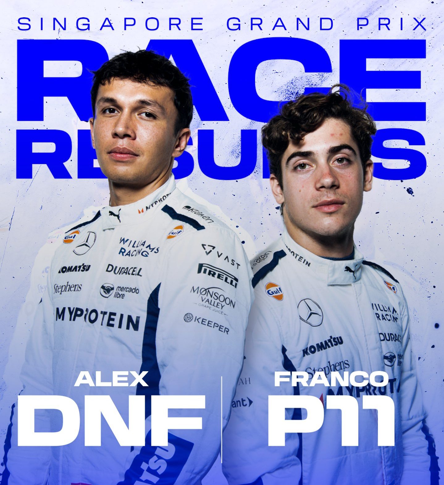 Por su parte, el compañero de equipo de Colapinto, Alexander Albon, criticó una de sus maniobras calificándola de “incorrecta”, mientras él abandonaba la carrera en la vuelta 15. El podio del Gran Premio de Singapur quedó en manos de McLaren, con Norris en primer lugar y Piastri en el tercero. El segundo puesto fue para el tricampeón de Red Bull, Max Verstappen.