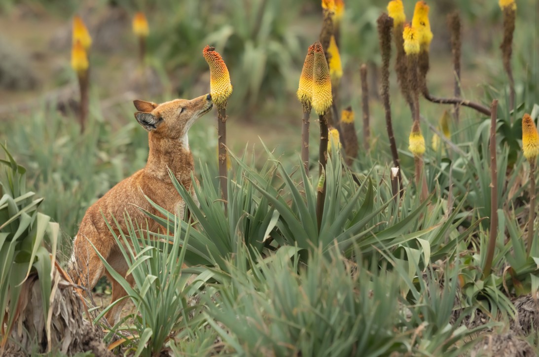 El lobo etíope, conocido por ser el carnívoro más amenazado de África, sorprendió a los investigadores alimentándose del néctar de la flor Kniphofia foliosa, conocida como «red hot poker». Este comportamiento, sugiere que estos depredadores podrían contribuir a la polinización, algo nunca antes documentado en un carnívoro de gran tamaño.