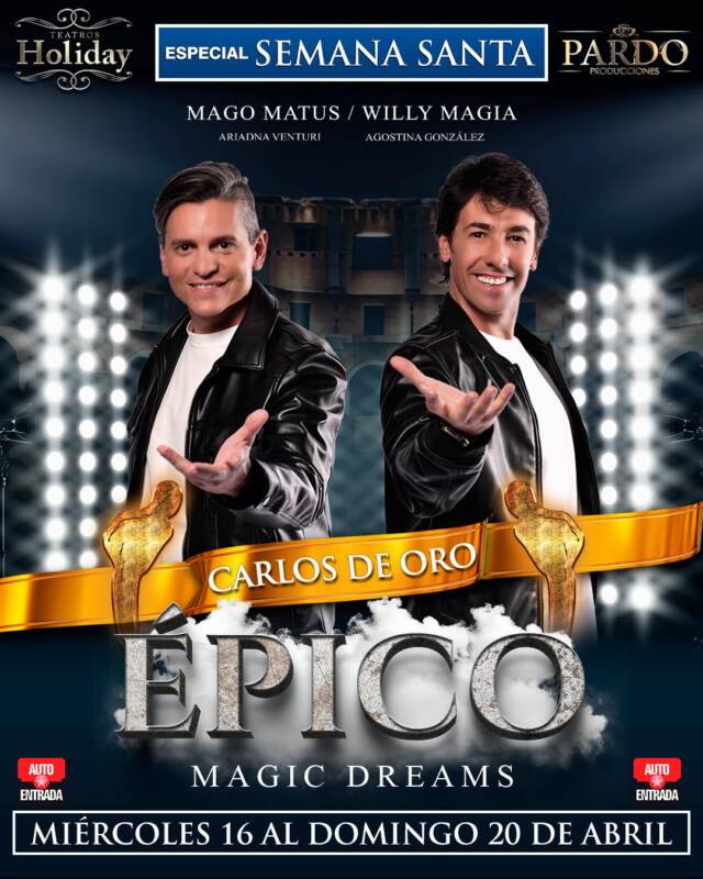 • Épico Magic Dreams: El Mago Matus y Willy Magia estarán en el teatro Holiday desde el miércoles 16 al domingo 20 de abril.