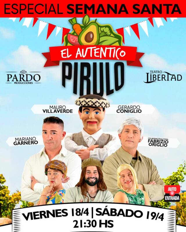 • El auténtico Pirulo: Mauro Villaverde, Gerardo Coniglio y su elenco vuelven este finde para cautivar al público en el Teatro Libertad el viernes 18 y sábado 19 de abril.